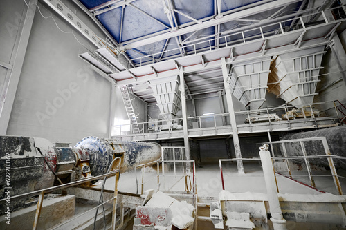 Grinding department with vertical hoppers at silica factory