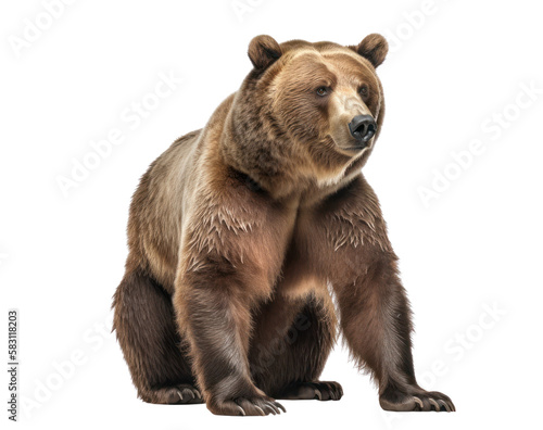 Grizzly bear isolated on white, transparent background, PNG, generative ai