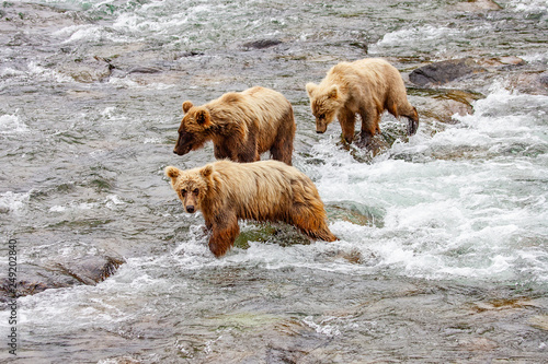 Grizzly bears fishing for salmon at Brooks Falls, Katmai NP, Alaska