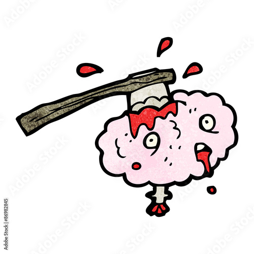 gross cartoon brain with axe in