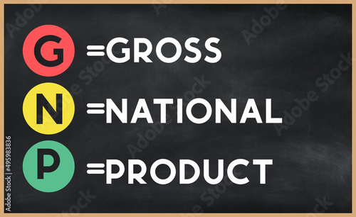 Gross national product - GNP acronym written on chalkboard, business acronyms.