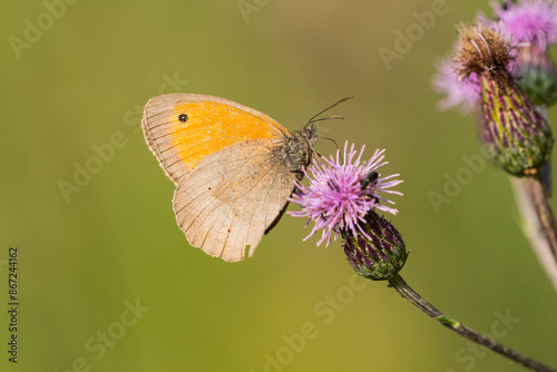 Grosses Ochsenauge (Maniola jurtina) an einer Distel