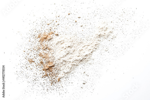 Ground bake powder particles unevenly dispersed on a pure white surface, perfect for PNG transparency