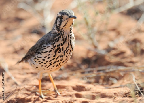 GROUNDSCRAPER THRUSH (Turdus litsitsirupa) , photographed at twee rivieren, kgalagadi, south africa.