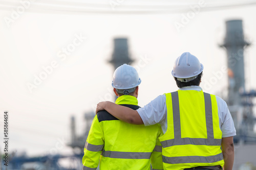 Group Asian man petrochemical engineer working at oil and gas refinery plant industry factory,The people worker man engineer work control at power plant energy industry manufacturing