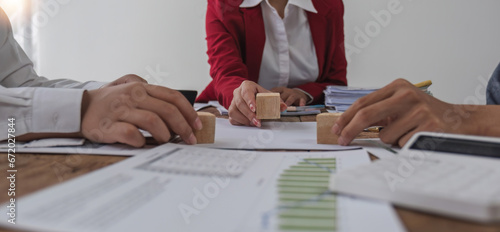 Group business people holding jigsaw puzzle together, Business man group are meeting together in the office, they are meeting the topic finance and financial management. Business management concept
