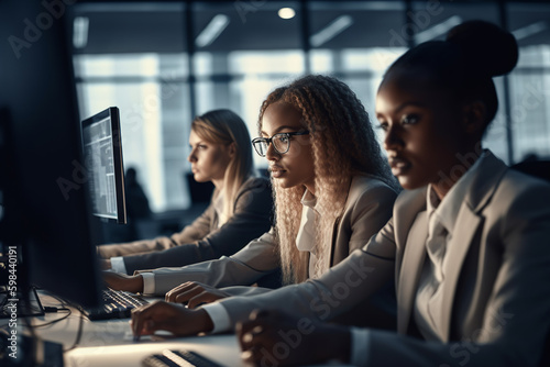 Group of african american businesswomen working on computers in modern office. The image is completely generated using Ai