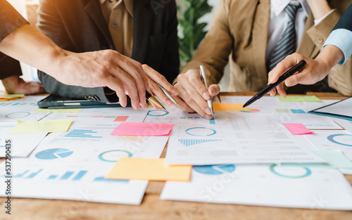 Group of asian business advisor discussing financial reporting situation together in boardroom.