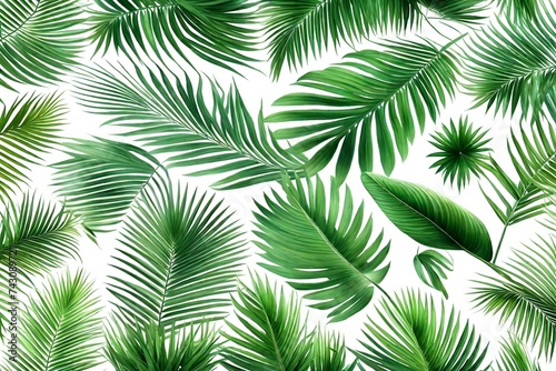 Group of big green leaves of exotic palm tree Isolated on white transparent background, png