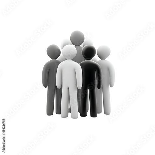 Group of Black and White Human Figures Standing Together in Transparent Background