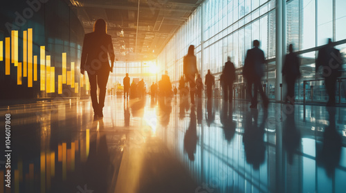 Group of business people silhouettes in modern office building and business network concept. Human resources with pastel innovation charts and graphs with statistics to analyze business