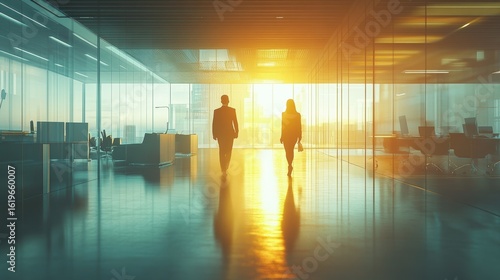 Group of Business people walking in the office corridor in night,People in business center walking at hall,motion go around at coworking space,Wide image,Concept of office life,co working space.
