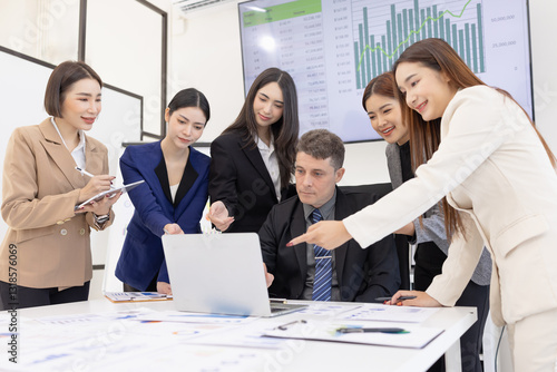 Group of business people working with analyzing financial data charts and business presentation plan in the modern office, Business financial documents and planning idea project concept.