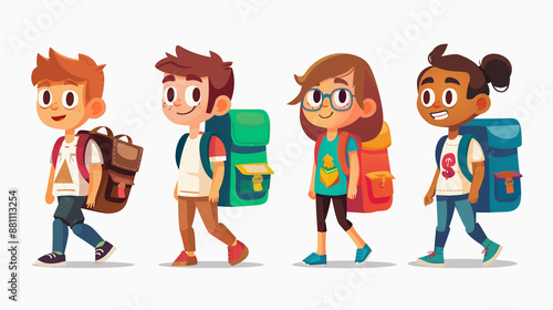 group of cartoon characters with a school backpacks on a white background, back to school concept
