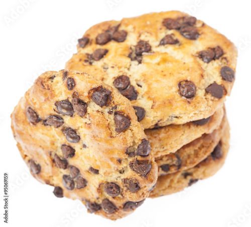 group of chocolate cookies isolated on a white background