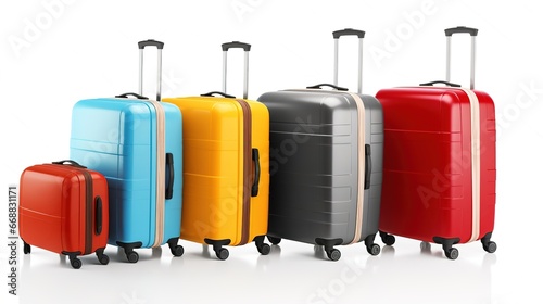 Group of colorful suitcases isolated on white background. 3D rendering.