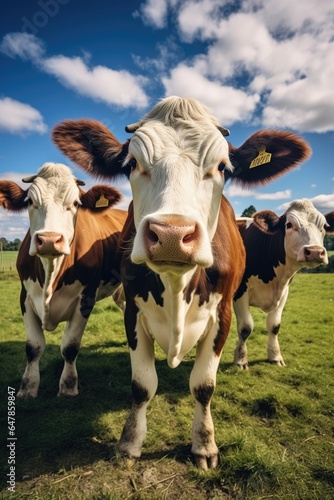 Group Of Cows Standing Next To Each Other On A Field. Generative AI