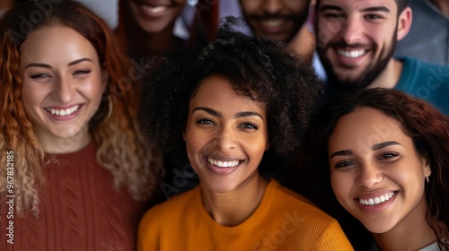 Group of diverse people smiling and looking at the camera.
