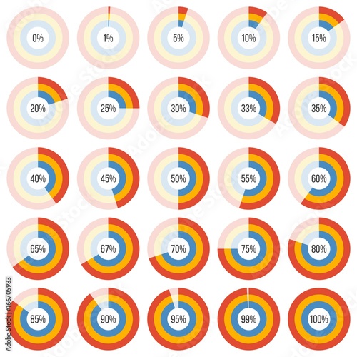 group of doughnut chart diagram collection in percentage for using in info graphic, flat design