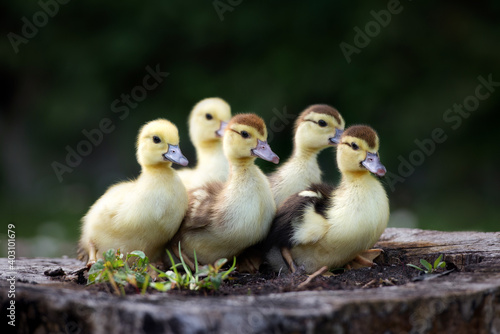 group of ducklings posing outdoors together