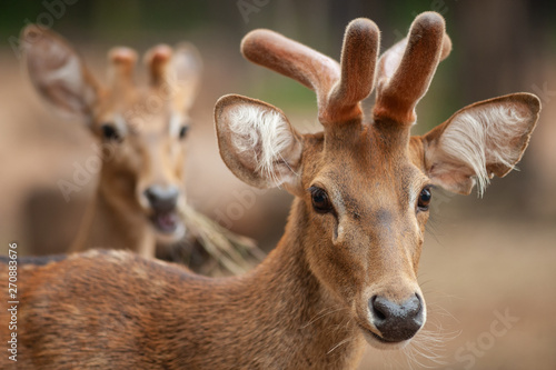 Group of Eld's deer, Thamin, Brown-antlered deer in Zoologigal Park, Thailand