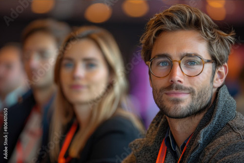 Group of entrepreneurs at an innovation networking conference. AI generated.