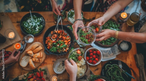group of friends supporting each other during their weight loss journey, sharing recipes
