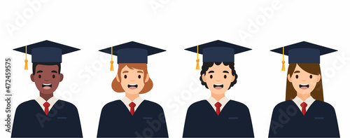 Group of graduation students isolated on a white background. Graduation of happy international students. Vector stock