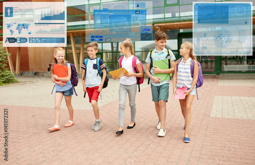 group of happy elementary school students walking