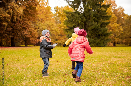 group of happy little kids having fun outdoors