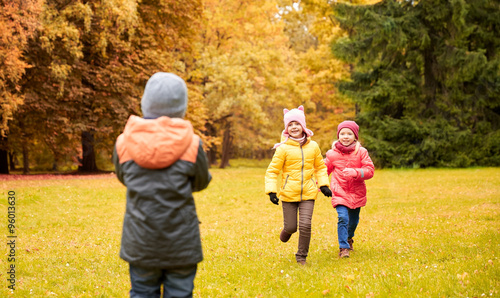 group of happy little kids running outdoors