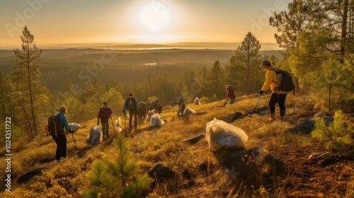 Group of Hikers Cleaning Up the Trail