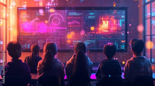 Group of Kids Watching Data Analytics Presentation on Big Screen