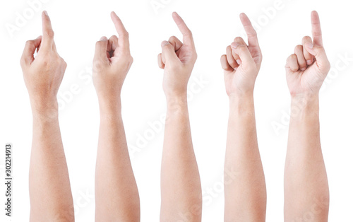 Group of Male Asian hand gestures isolated over the white background. Pointing Visual Touch Action.