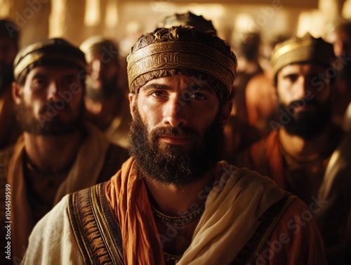 Group of Men Standing with Beard Leader