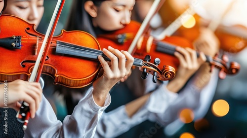 Group of Musicians Playing Violins Together