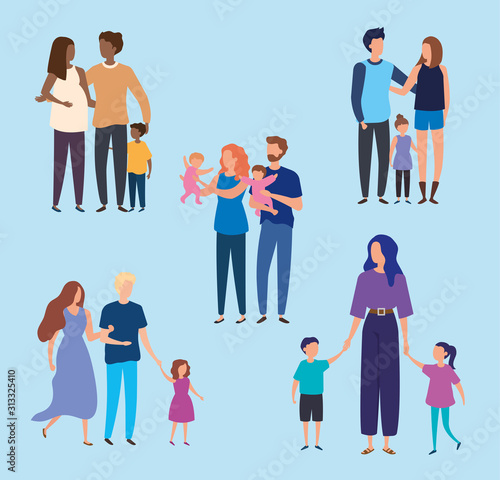 group of parents with sons characters vector illustration design