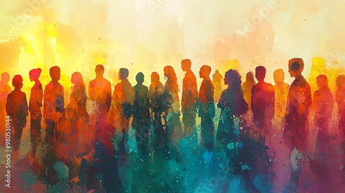 Group of people. LGBT Seamless Pattern. Silhouettes of diverse people painted in the colors of the rainbow. Pride Month.