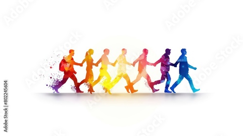 Group of People Running in a Line