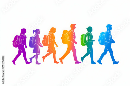 Group of people walking with bags. Adventure tourism or students going to college generative AI