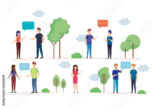group of people with speech bubble characters