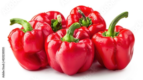 Group of red bell peppers on a white background clipping path