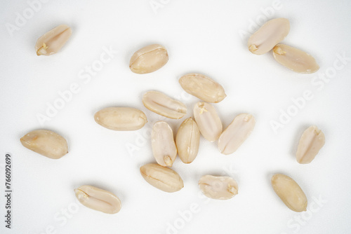 Group of roasted peeled peanuts isolated background