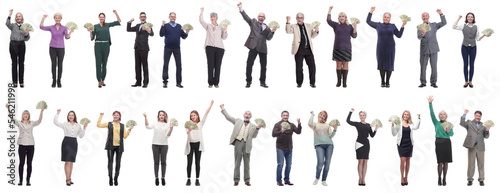 group of successful business people with money isolated