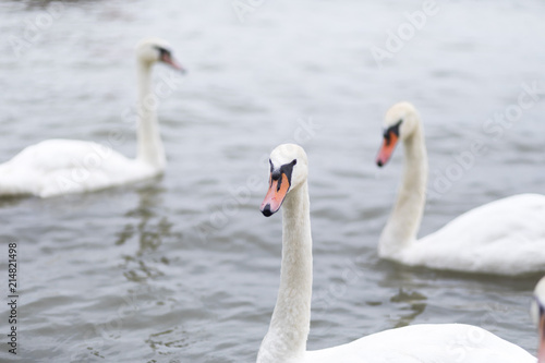 Group of swans swimming on the River Danube