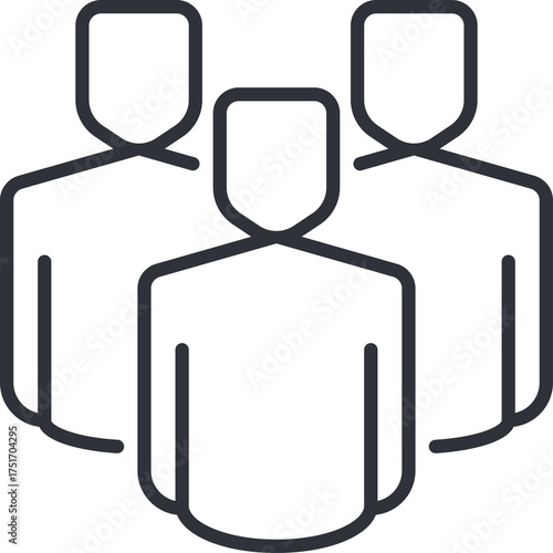 Group of three stylized figures depicted in a simple outline graphic on a clean white background representing teamwork and community in a modern abstract design.