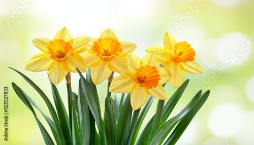 Group of Vibrant Yellow Daffodils in Springtime Bloom, Isolated on a Soft Focus Background