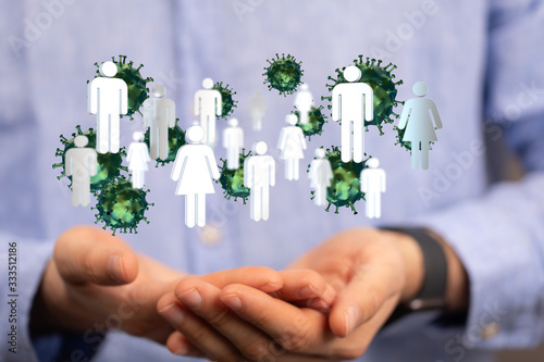 Group of virus cells. 3D illustration of Coronavirus cells.