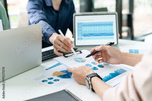 Group of young asian creative business brain storm meeting presentation,discussing roadmap to product launch, planning,strategy,new business development,working with new startup project in office.