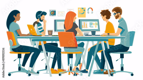 Group of young business people and designers collaborating on a new project, embodying the startup concept.
